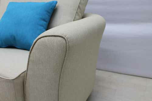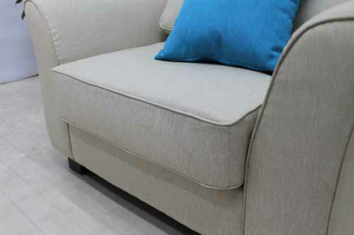 ●商品名:Baque de Loop 一人掛けソファー sf-queen-1p ファブリック 布 ベージュ ●仕様 ・サイズ(約cm):横幅116.5×奥行85×高さ85×座面45.5×脚高8 ・カラー:ベージュ ・材質:布製 ※クッションも布製で色はブルーです。