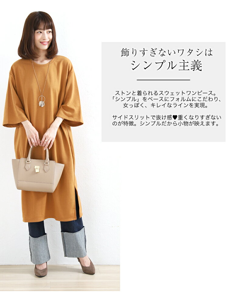 超目玉■楽天1位 スウェット素材スリットワンピース サイドスリットワンピース ロング丈 マキシ サイドスリット スリット レディース ワンピ ワンピース わんぴ 秋 秋冬 長袖 ゆったり 体型カバー ロングワンピース ラウンドネック 無地